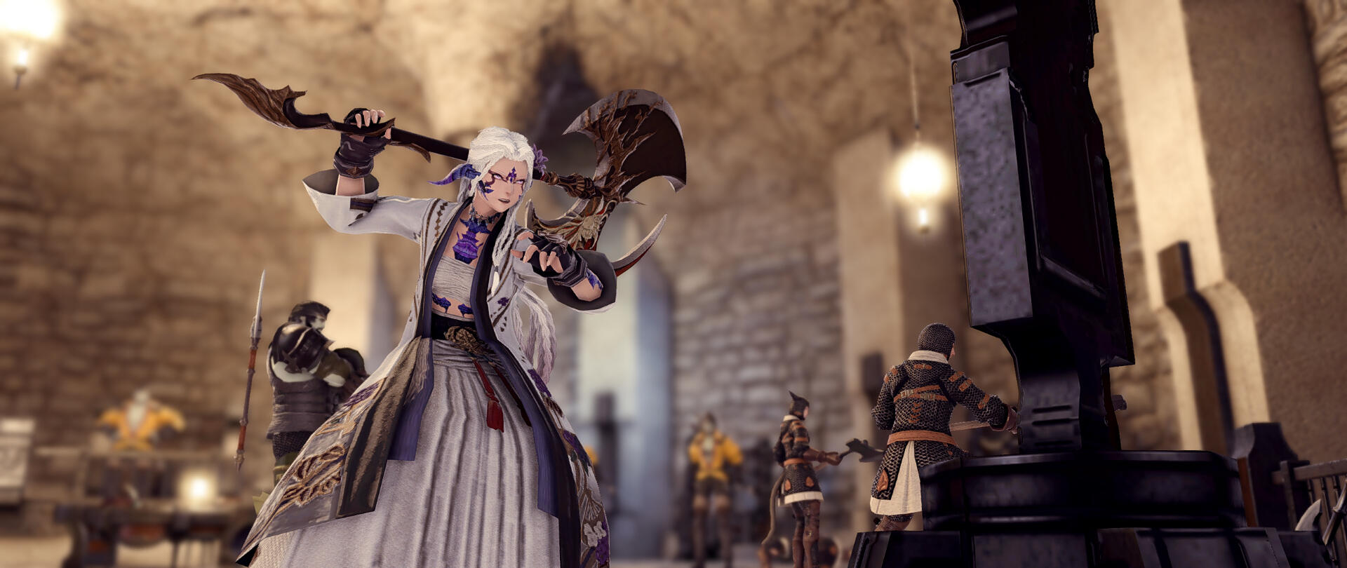 When he asked her whether she would ever consider taking up a weapon, Talyah shrugged. She'd always done fine without, but she also hadn't ever spent the time to study a particular weapon at length. If handed a bow or spear, she could be a reasonably accurate hunter, but she was certainly no sharpshooter.The old Miqo'te decided that if she were to continue as his protégé, he would at least offer her the chance to see the different martial arts in Eorzea. After many fruitless visits to various schools, they finally returned to Limsa Lominsa where Talyah showed a strong affinity for the savagery of the greataxe. So it was that she began her training with the Marauder's Guild.