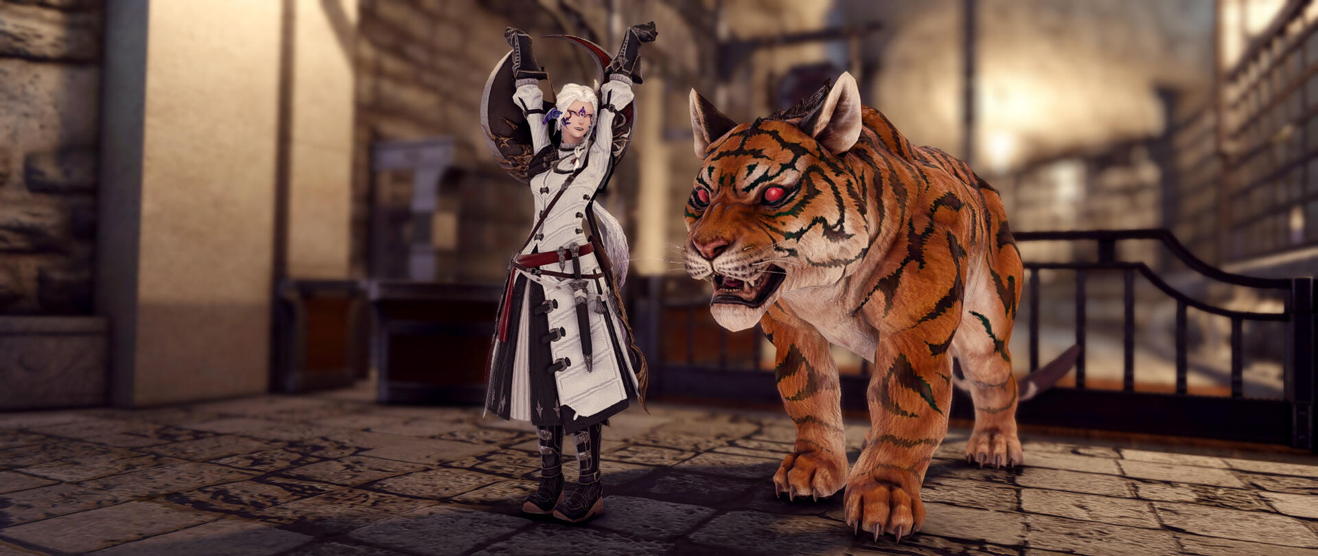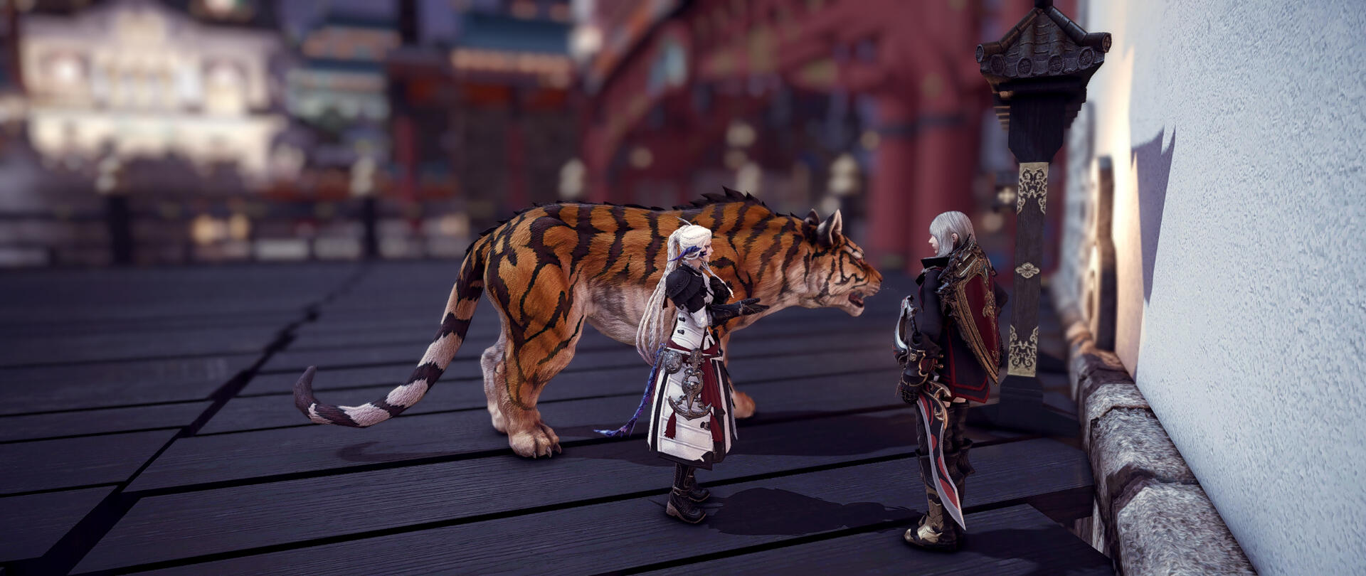 The commotion of "Talyah" and Batu arriving caught the attention of an old veteran who'd been enjoying a meal at the Drowning Wench.After watching the two sign on as members of the Guild, the older Miqo'te waved them over and introduced himself as X'jinh Tia. A former Nunh who'd been bested by a younger challenger in his growing age, X'jinh left his tribe after his defeat to explore the outside world as he'd always wished to since his youth. Eventually that brought him to the island of Vylbrand, where he started a new life in Limsa Lominsa.A Xaela with Talyah's features was an uncommon sight in these parts, though there were the occasional visitors passing through on business, even more so since the opening of trade with Hingashi. X'jinh, ever the curious explorer, found himself asking for Talyah and Batu's story. Not without its own reward of course - he made sure to order a warm meal for the girl and a heaping platter of meat for the tiger.
